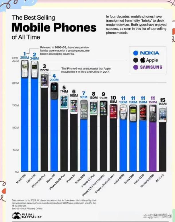比如在2003年,诺基亚1100全球累计销售2.5亿台,当年Symbian市占超过70%,至今仍然是神一般的存在,后来者无法超越。