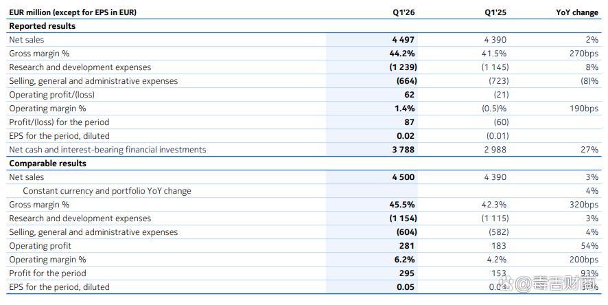 前两天诺基亚公布了2026年第一季度的财报数据。